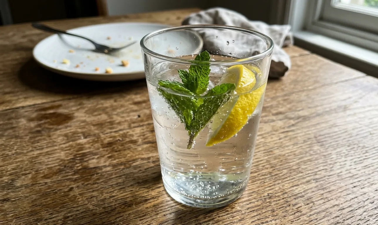 Stiklinė šilto vandens su lašeliu citrinos sulčių puikiai nuplauna maisto likučius ir sumažina norą valgyti saldainius.