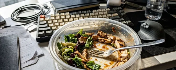 Daugelis žmonių yra įpratę greitai užkandžiauti tiesiai prieš mirgantį monitorių, stengdamiesi neatsiriboti nuo atliekamų užduočių, tačiau retai kas atkreipia